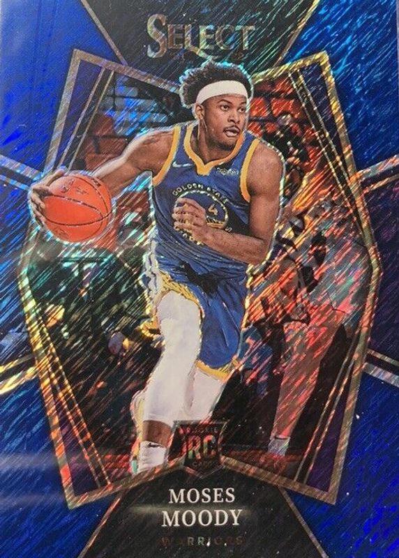 2021-22 Panini Select #187 Moses Moody Rookie Blue Shimmer Prizms Warriors