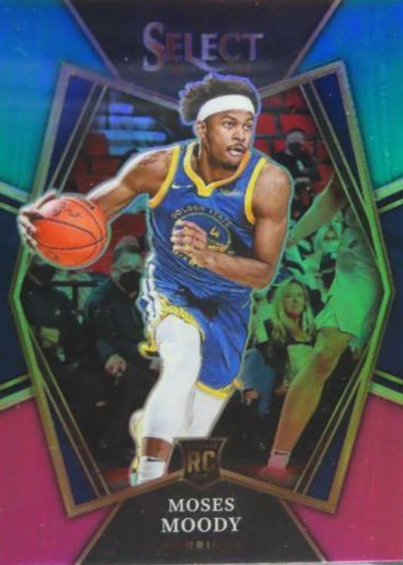 This card is 1 of 132 Moses Moody's card variations in the 2021 Select set being tracked by Sports Card Investor, including Concourse, Concourse Green Ice, Concourse Green White Purple, Concourse Silver, and Courtside.