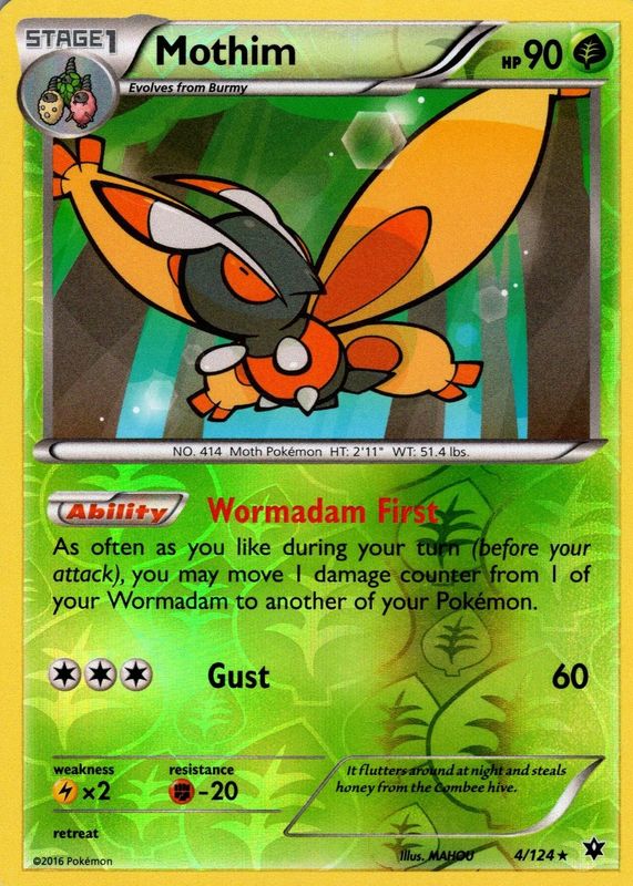 REVERSE HOLO Mothim 4/124 LP - XY Fates Collide Pokemon Card - MAHOU Art