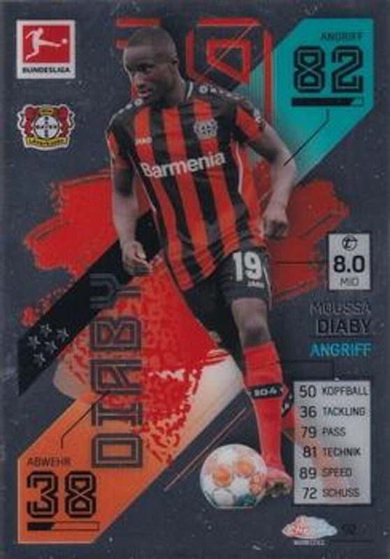 Moussa Diaby 2021 Topps Chrome Match Attax Bundesliga #92 Base RAW Price Guide