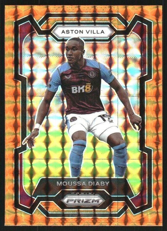 The Moussa Diaby 2023 Prizm Premier League #111 Orange Mosaic card is 1 of 86 Moussa Diaby's card variations in the 2023 Prizm Premier League set being tracked by Sports Card Investor, including Base, Blue Mosaic, Breakaway, Breakaway Orange, and Choice.