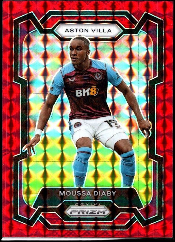 The Moussa Diaby 2023 Prizm Premier League #111 Red Mosaic card is 1 of 86 Moussa Diaby's card variations in the 2023 Prizm Premier League set being tracked by Sports Card Investor, including Base, Blue Mosaic, Breakaway, Breakaway Orange, and Choice.