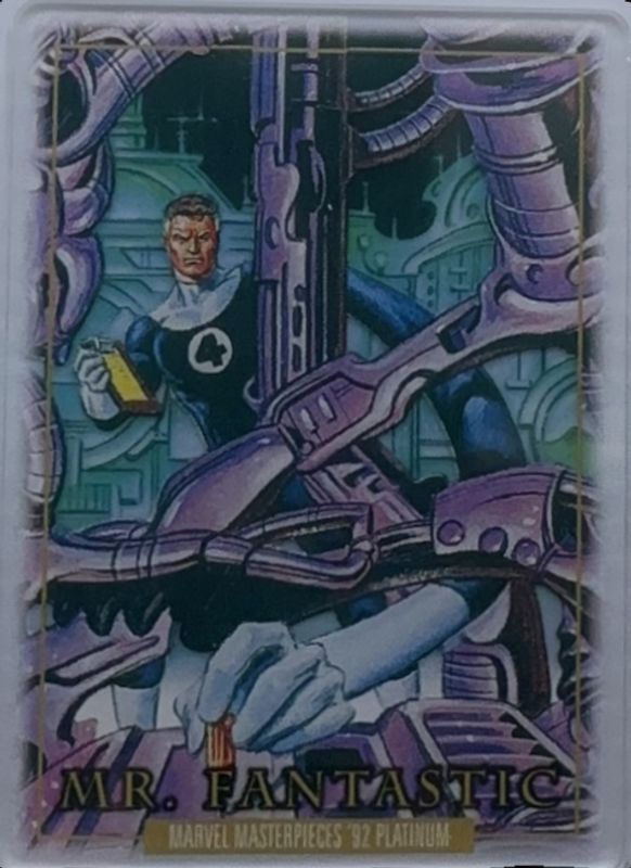 The Mr Fantastic 2024 Upper Deck Marvel Masterpieces '92 Platinum #59 Plexi card is 1 of 38 Mr Fantastic's card variations in the 2024 Upper Deck Marvel Masterpieces '92 Platinum set being tracked by Sports Card Investor, including Base, Blue Traxx, Canvas, Clear Cut, and Emerald Surge.