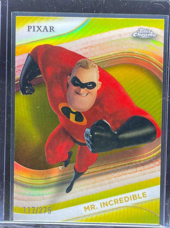 The Mr Incredible 2025 Topps Chrome Disney #150 Yellow Refractor /275 card is 1 of 37 Mr Incredible's card variations in the 2025 Topps Chrome Disney set being tracked by Sports Card Investor, including Base, Mini Diamonds Refractor, Prism Refractor, Refractor, and Yellow Mini Diamonds Refractor.
