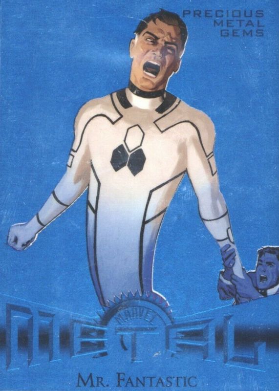 The Mr. Fantastic 2013 Fleer Retro #1 Precious Metal Gems Blue /50 card in Raw condition has not changed in price in the last 30 days and was last sold for $458.00 .