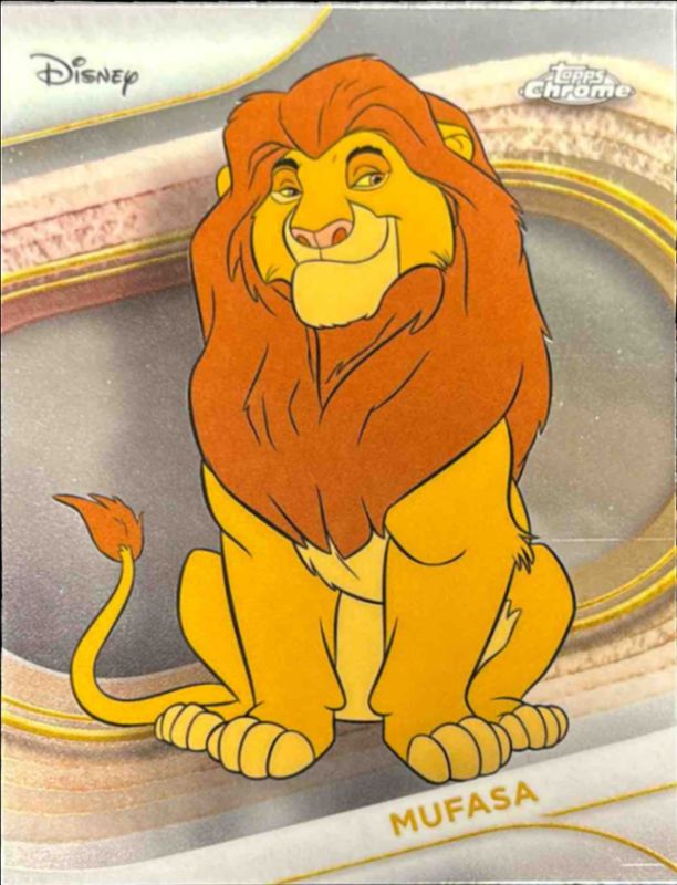 The Mufasa 2025 Topps Chrome Disney #96 Base card is 1 of 62 Mufasa's card variations in the 2025 Topps Chrome Disney set being tracked by Sports Card Investor, including #198 Base, #198 Mini Diamonds Refractor, #96 Mini Diamonds Refractor, #198 Prism Refractor, and #96 Prism Refractor.
