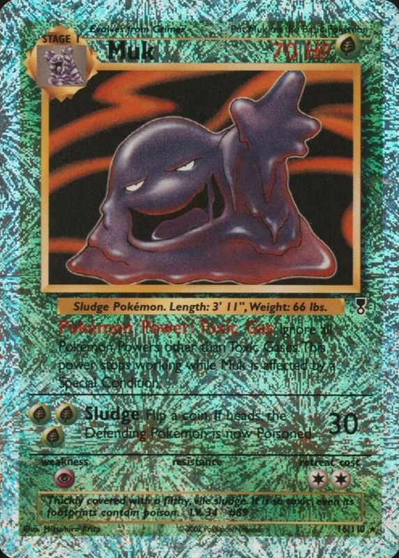 The Muk 2002 Legendary Collection #16 Reverse Holo card in Raw TCG (Near Mint) condition has not changed in price in the last 30 days and was last sold for $48.29 .
