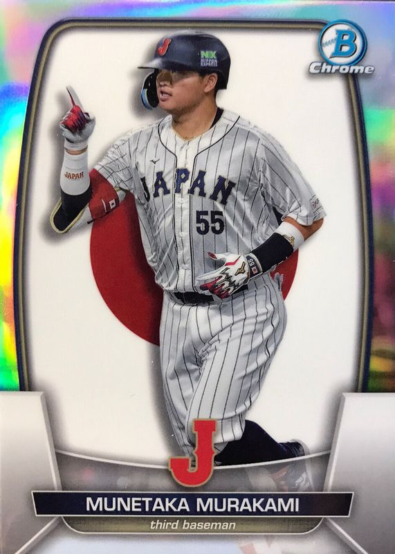 The Munetaka Murakami 2023 Bowman Chrome #WBC-50 WBC Flag - Refractor /499 card in Raw condition has moved down -$14.01 (-23.3%) in the last 30 days and was last sold for $45.99 .