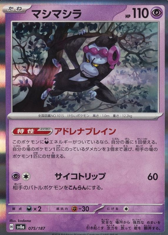 This card is 1 of 3 Munkidori's card variations in the 2024 Japanese Scarlet & Violet: Terastal Fest ex set being tracked by Sports Card Investor, including Master Ball Reverse Holo, and Reverse Holo.