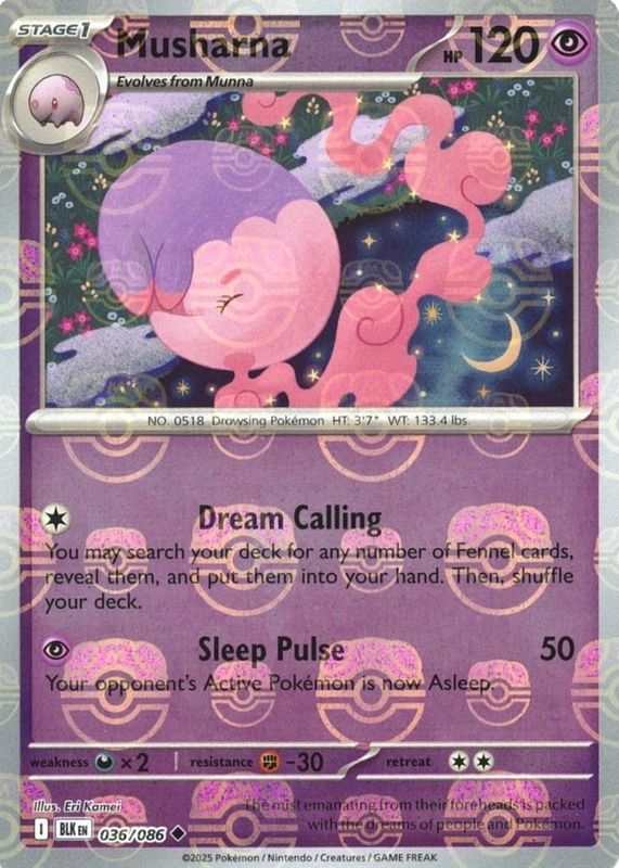 Musharna 2025 Scarlet & Violet: Black Bolt #036/086 Master Ball Reverse Holo RAW TCG (LIGHTLY PLAYED) Price Guide