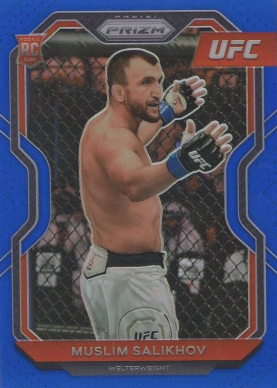 The Muslim Salikhov 2021 Prizm UFC #29 Blue /199 Rookie card in Raw condition has not changed in price in the last 30 days and was last sold for $1.55 .