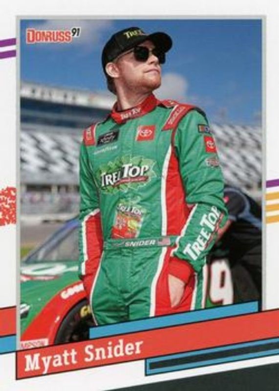 The Myatt Snider 2024 Donruss NASCAR #126 Base card is 1 of 34 Myatt Snider's card variations in the 2024 Donruss NASCAR set being tracked by Sports Card Investor, including Optic, Optic Black Pandora, Optic Blue Velocity, Optic Holo, and Optic Orange Velocity.