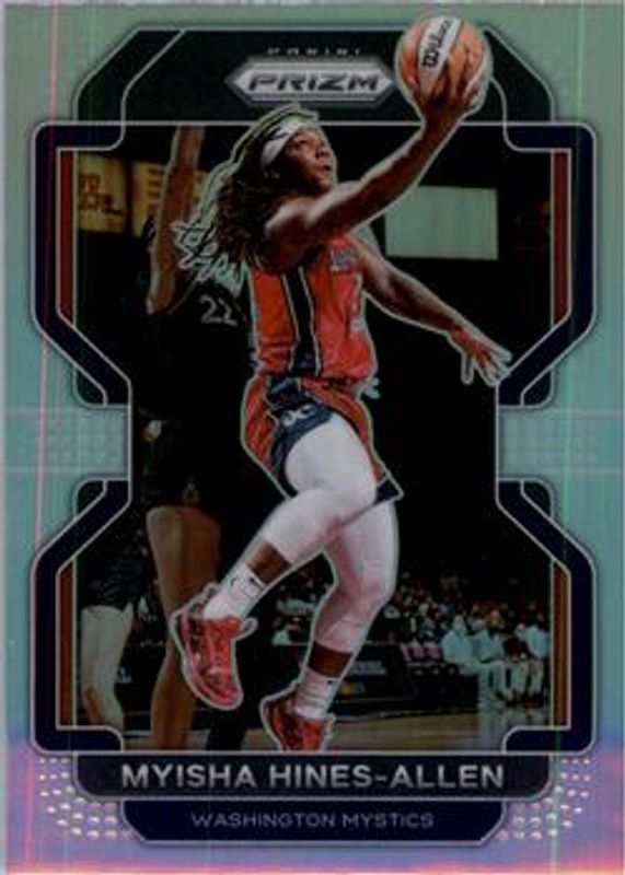 The Myisha Hines-Allen 2022 Prizm WNBA #12 Silver card is 1 of 26 Myisha Hines-Allen's card variations in the 2022 Prizm WNBA set being tracked by Sports Card Investor, including Base, Green, Green Ice, Hyper, and Ice.