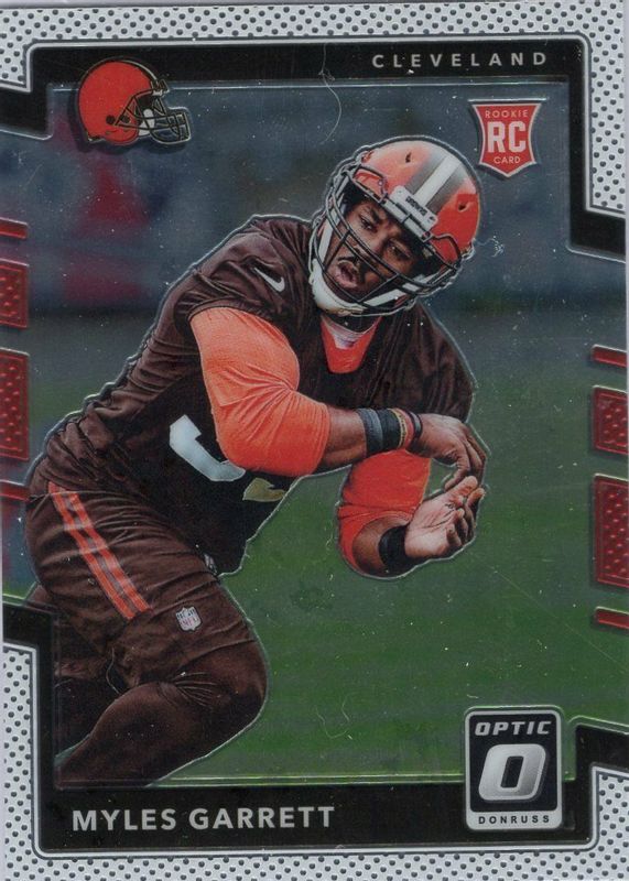 The Myles Garrett 2017 Optic #106 Base Rookie card in Raw condition has moved up $7.51 (+125%) in the last 30 days and was last sold for $13.50 .