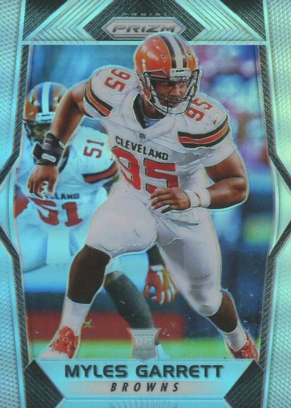 The Myles Garrett 2017 Prizm #242 Silver Rookie card in Raw condition has moved up $10.00 (+14.3%) in the last 30 days and was last sold for $80.00 .