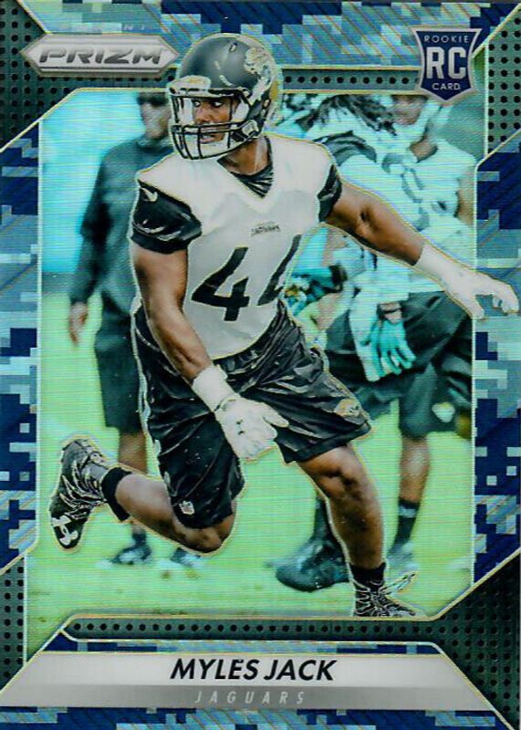 This card is 1 of 17 Myles Jack's card variations in the 2016 Prizm set being tracked by Sports Card Investor, including Flash, Green, Pink, Red White Blue Disco, and Silver.
