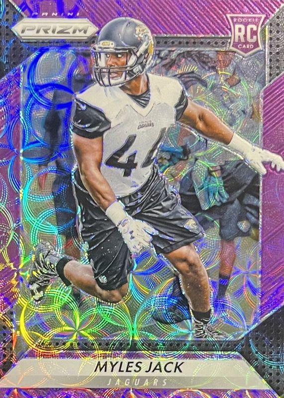 This card is 1 of 17 Myles Jack's card variations in the 2016 Prizm set being tracked by Sports Card Investor, including Flash, Green, Pink, Red White Blue Disco, and Silver.