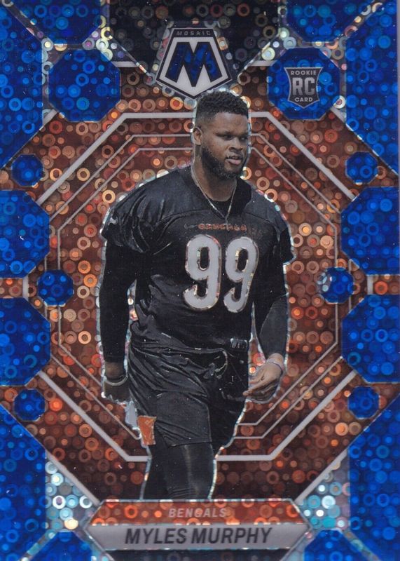 The Myles Murphy 2023 Mosaic #351 No Huddle Blue /75 Rookie card in Raw condition has not changed in price in the last 30 days and was last sold for $2.25 .
