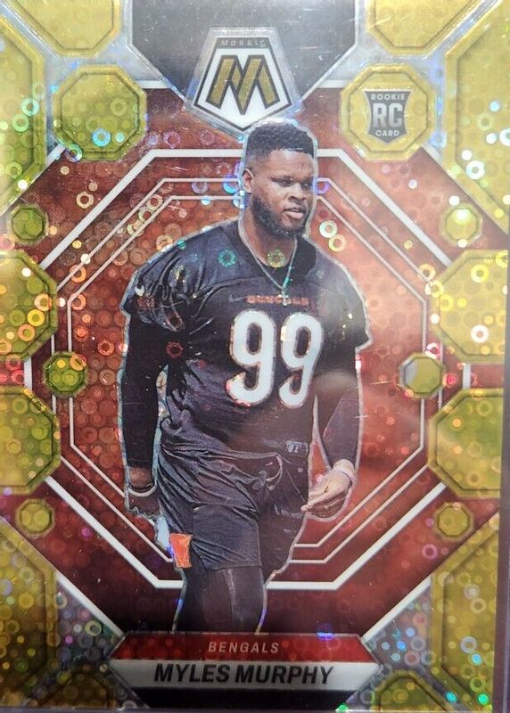 The Myles Murphy 2023 Mosaic #351 No Huddle Gold /10 Rookie card in Raw condition has not changed in price in the last 30 days and was last sold for $15.00 .