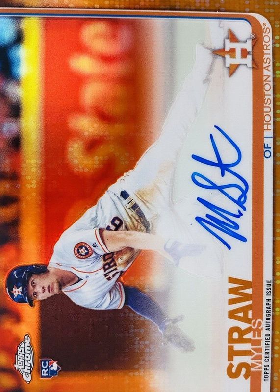 The Myles Straw 2019 Topps Chrome #RA-MS Rookie Auto - Orange Refractor /25 card in Raw condition has not changed in price in the last 30 days and was last sold for $17.00 .