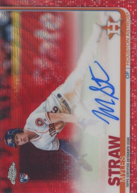 The Myles Straw 2019 Topps Chrome #RA-MS Rookie Auto - Red Wave Refractor /5 card in Raw condition has not changed in price in the last 30 days and was last sold for $30.00 .