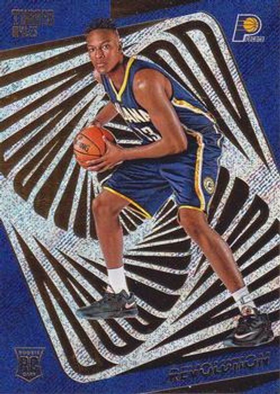 The Myles Turner 2015 Revolution #104 Base Rookie card is 1 of 12 Myles Turner's card variations in the 2015 Revolution set being tracked by Sports Card Investor, including Angular, Infinite, Nova, Cosmic /100, and Sunburst /75.
