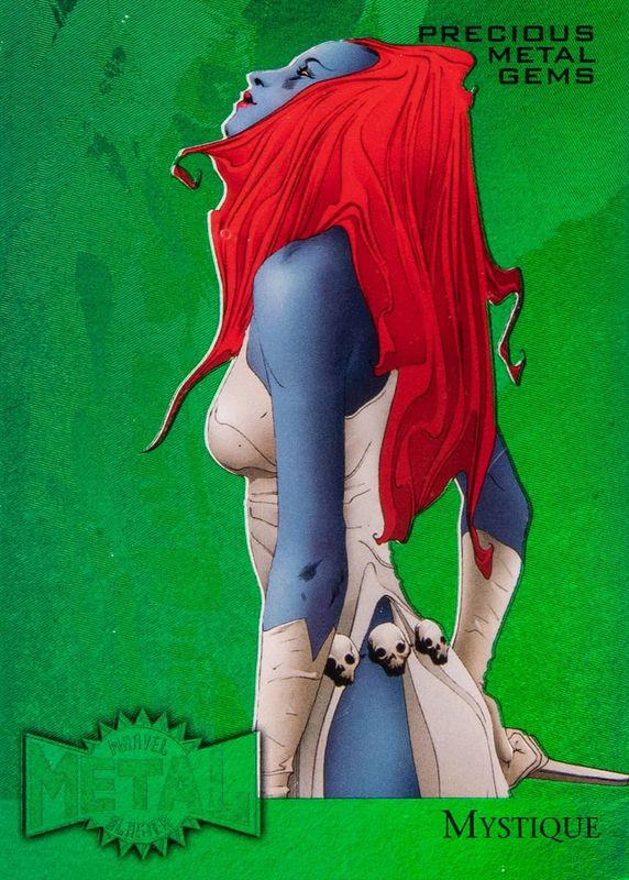 This card is 1 of 4 Mystique's card variations in the 2015 Fleer Retro set being tracked by Sports Card Investor, including Metal Blaster, Precious Metal Gems Red /100, and Precious Metal Gems Blue /50.