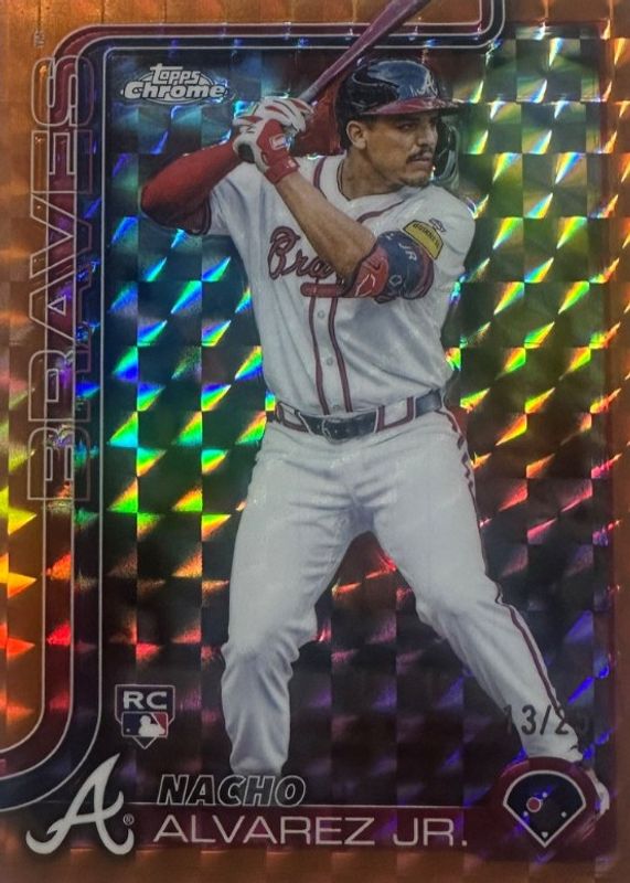 This card is 1 of 82 Nacho Alvarez Jr.'s card variations in the 2025 Topps Chrome set being tracked by Sports Card Investor, including Base, Geometric Refractor, Lightboard Logo Variation, Negative Refractor, and Prism Refractor.