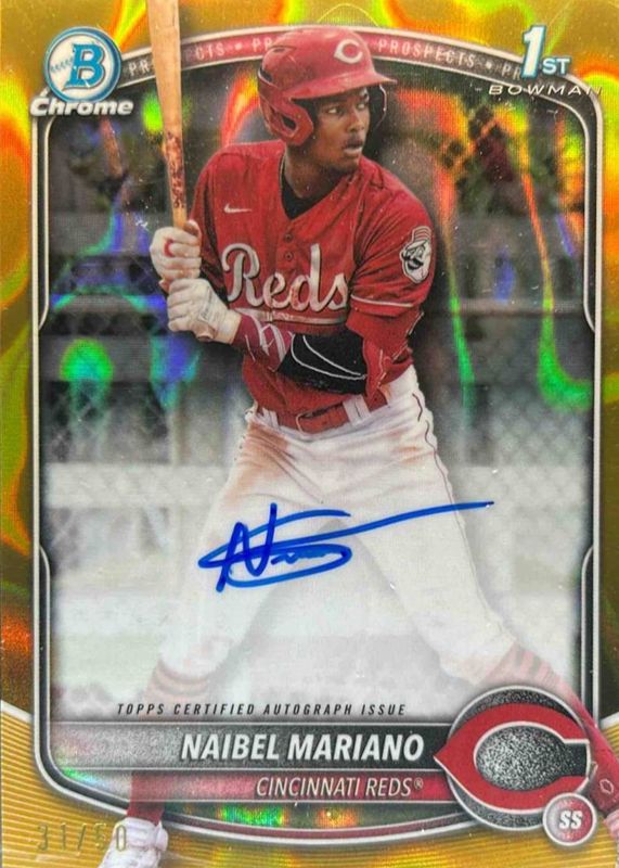 2025 Bowman Chrome Naibel Mariano Gold Lava /50 Auto 1st Prospect Reds