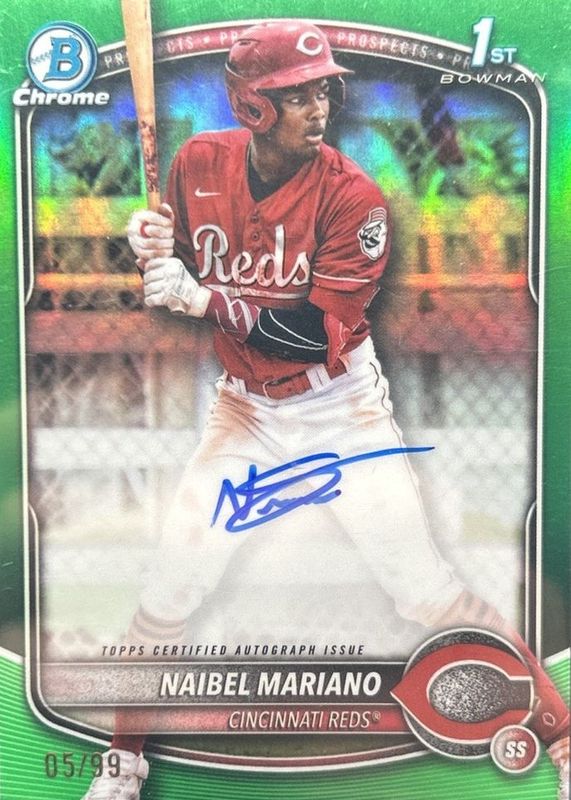 2025 Bowman Chrome Naibel Mariano Auto Green Refractor 1st Bowman /99 Reds NK