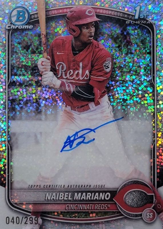 2025 Bowman Chrome - Naibel Mariano 1st Speckle Refractor Auto #/299 - Reds SS