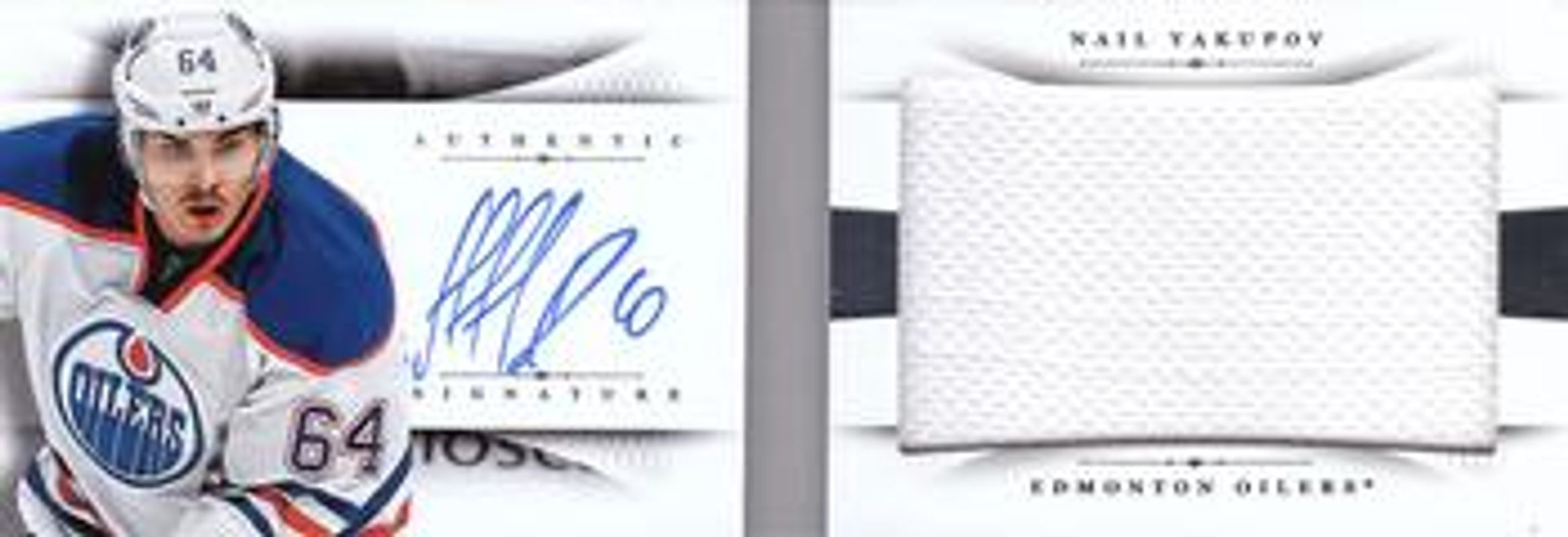 Nail Yakupov's Hockey cards are available in at least 18 sets. Nail Yakupov's biggest 7-day price movers are 2013 National Treasures #RB-NY Rookie Jumbo Jerseys Booklet Autographs /99, 2013 National Treasures #CO-NY Colossal Jerseys /50, and 2013 National Treasures #189 Rainbow /21.