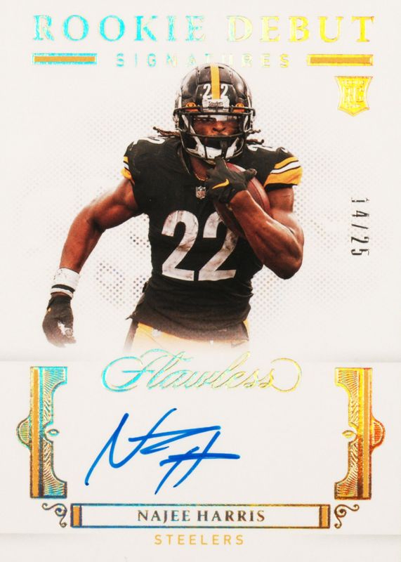 The Najee Harris 2021 Flawless #RDS-NHA Rookie Debut Signatures (/25) card in Raw condition has not changed in price in the last 30 days and was last sold for $23.50 .