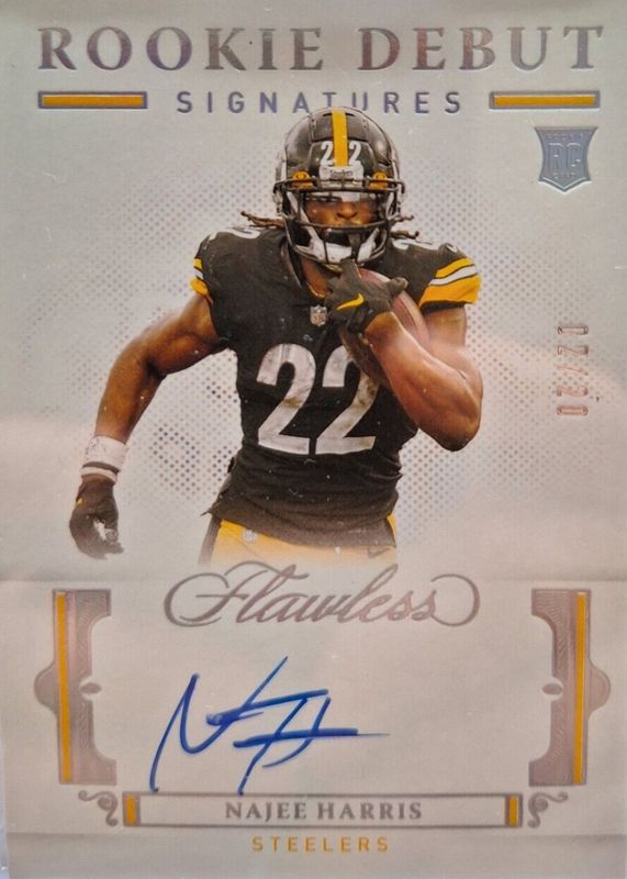 The Najee Harris 2021 Flawless #RDS-NHA Rookie Debut Signatures - Silver (/20) card in Raw condition has not changed in price in the last 30 days and was last sold for $67.00 .