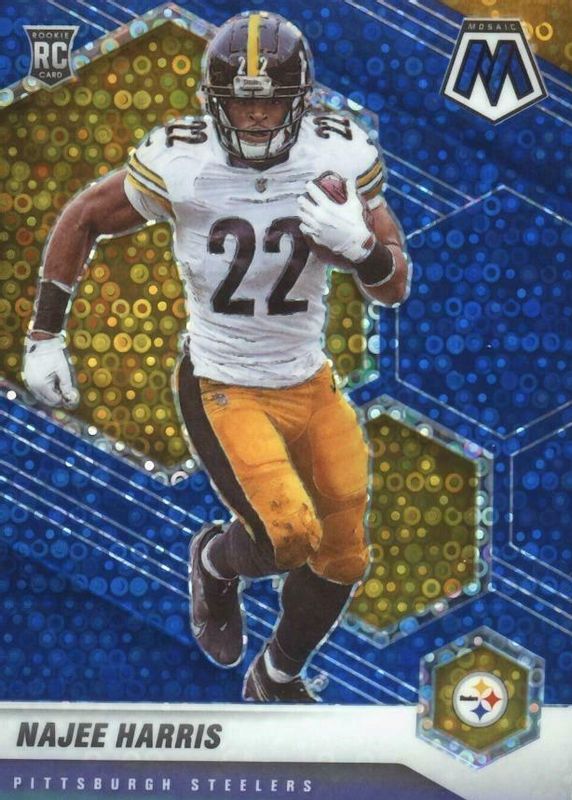 The Najee Harris 2021 Mosaic #313 No Huddle Blue /75 Rookie card in Raw condition has not changed in price in the last 30 days and was last sold for $40.00 .