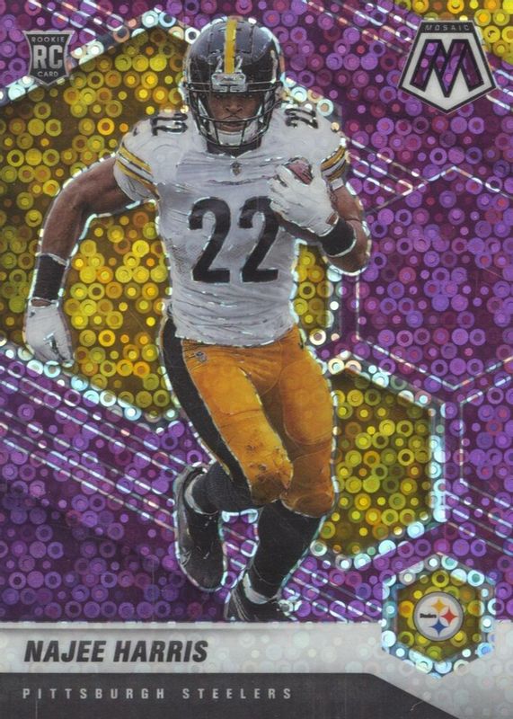 This card is 1 of 94 Najee Harris' card variations in the 2021 Mosaic set being tracked by Sports Card Investor, including Base, Choice Red & Green, Green, No Huddle, and Pink Camo.
