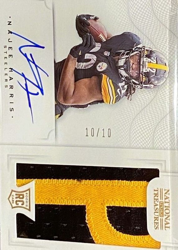 This card is 1 of 57 Najee Harris' card variations in the 2021 National Treasures set being tracked by Sports Card Investor, including Rookie Patch Auto /99, Rookie Patch Auto - Green Jersey Number (/22), Rookie Patch Auto - Purple /49, Rookie Patch Auto - Holo Silver /25, and Rookie Patch Auto - Stars & Stripes Holo Silver /25.