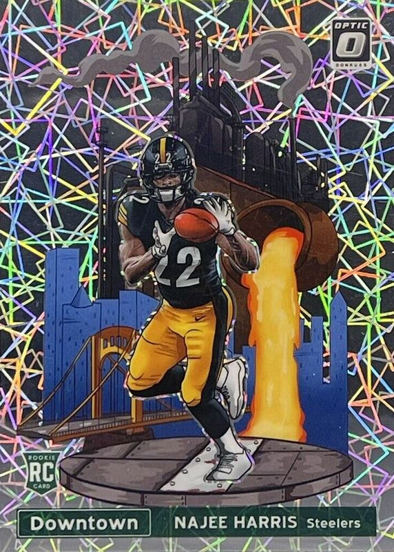 The Najee Harris 2021 Optic #DT-20 Downtown /(SSP) Rookie card in Raw condition has moved down -$8.50 (-3.6%) in the last 30 days and was last sold for $225.00 .