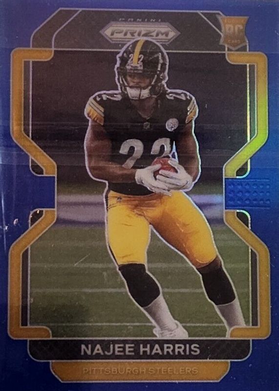 The Najee Harris 2021 Prizm #343 Blue /(SSP) Rookie card in Raw condition has not changed in price in the last 30 days and was last sold for $12.19 .