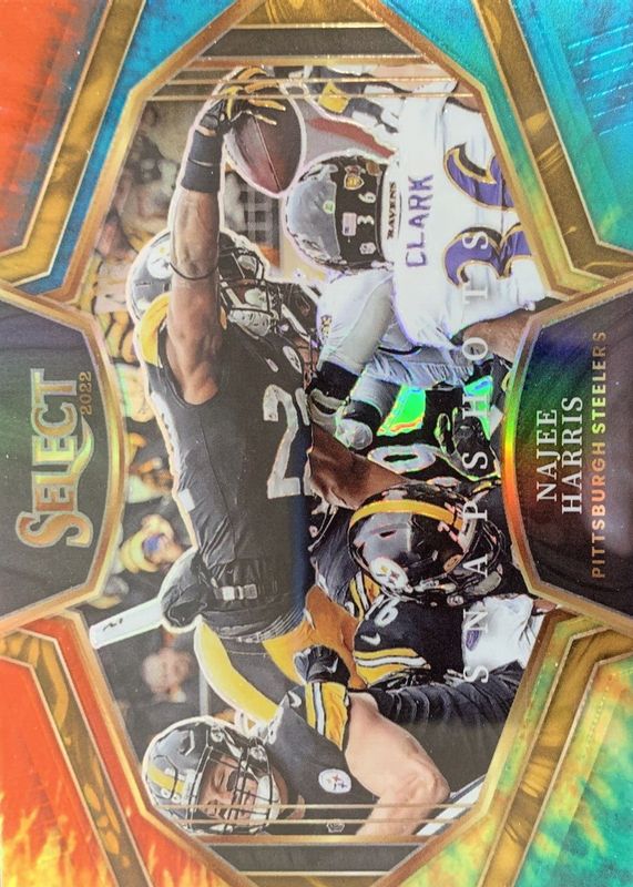 This card is 1 of 18 Najee Harris' card variations in the 2022 Select set being tracked by Sports Card Investor, including Phenomenon - Zebra /(SSP), Select Future - Zebra /(SSP), Snapshots - Zebra /(SSP), Phenomenon - Tie-Dye /25, and Select Future - Tie-Dye /25.