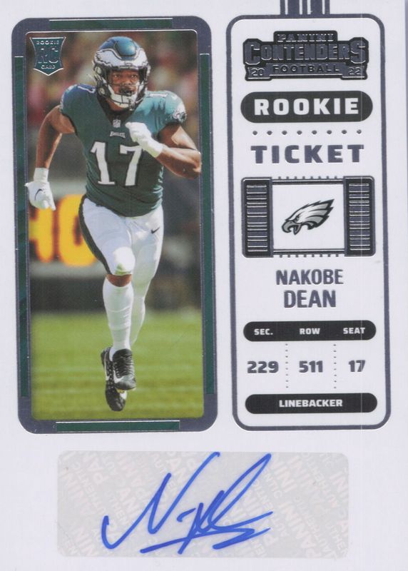 2022 Contenders Nakobe Dean Rookie Ticket Auto Philadelphia Eagles (RC) #188