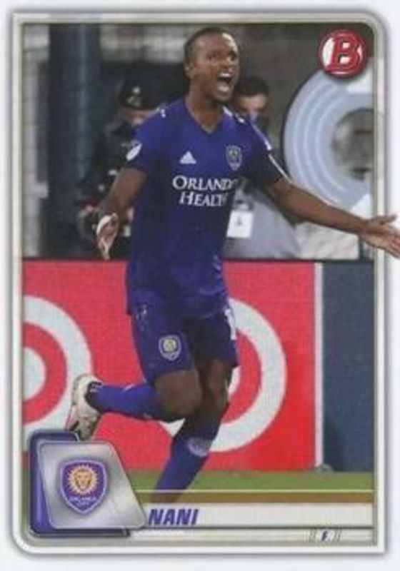 The Nani 2020 Bowman MLS #98 Base card is 1 of 8 Nani's card variations in the 2020 Bowman MLS set being tracked by Sports Card Investor, including Blue /150, Yellow /75, Gold /50, Orange /25, and Red /5.