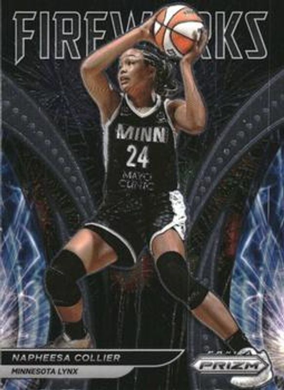 The Napheesa Collier 2022 Prizm WNBA #10 Fireworks card is 1 of 56 Napheesa Collier's card variations in the 2022 Prizm WNBA set being tracked by Sports Card Investor, including Base, Green, Green Ice, Hyper, and Ice.