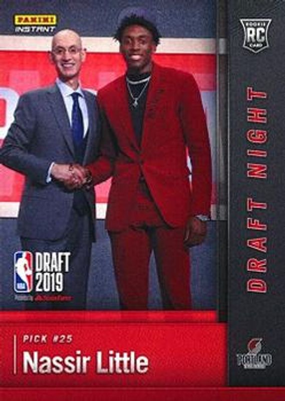 The Nassir Little 2019 Panini Instant Draft Night #DN-NL Base Rookie card is 1 of 4 Nassir Little's card variations in the 2019 Panini Instant Draft Night set being tracked by Sports Card Investor, including Black /25, Green /10, and One of One /1.