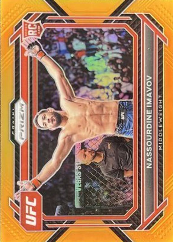 The Nassourdine Imavov 2023 Prizm UFC #39 Orange /99 Rookie card in Raw condition has not changed in price in the last 30 days and was last sold for $4.25 .
