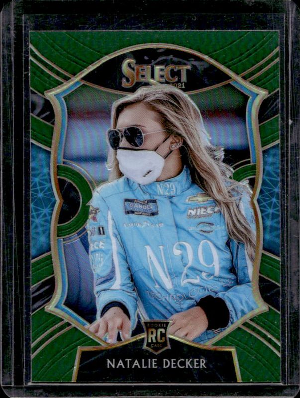 The Natalie Decker 2021 Chronicles NASCAR #4 Select - Green Rookie card is 1 of 85 Natalie Decker's card variations in the 2021 Chronicles NASCAR set being tracked by Sports Card Investor, including Base, Blue /199, Red /99, Purple /25, and Gold /10.
