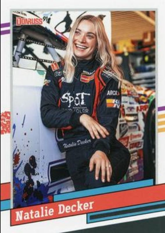 The Natalie Decker 2024 Donruss NASCAR #127 Base card is 1 of 43 Natalie Decker's card variations in the 2024 Donruss NASCAR set being tracked by Sports Card Investor, including Optic, Optic Black Pandora, Optic Blue Velocity, Optic Holo, and Optic Orange Velocity.