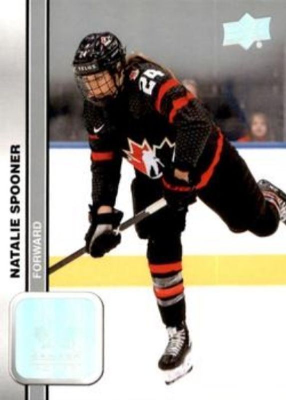 The Natalie Spooner 2023 Upper Deck Team Canada Juniors #56 Base card is 1 of 24 Natalie Spooner's card variations in the 2023 Upper Deck Team Canada Juniors set being tracked by Sports Card Investor, including Clear Cut, Clear Cut Exclusives, Green, Jerseys, and Patterned Foilboard.