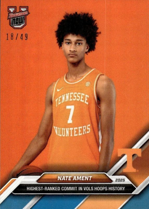 2024-25 Bowman U Now Nate Ament Blue #/49 Top Recruit Commits #110 Tennessee