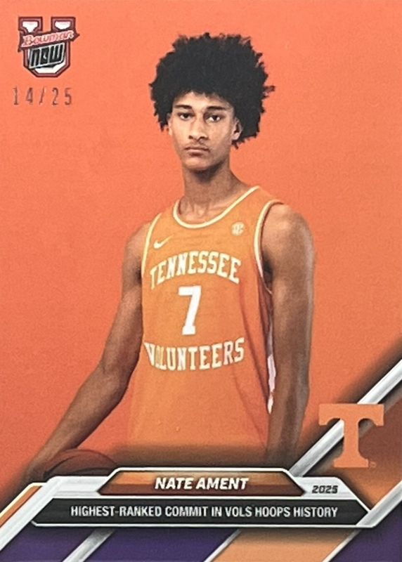 This card is 1 of 6 Nate Ament's card variations in the 2024 Bowman U Now set being tracked by Sports Card Investor, including Base (Print Run: 2,235), Blue /49, Red /10, Orange /5, and Gold /1.